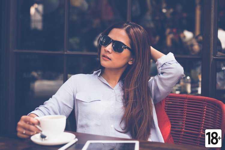 Соблазнительная красотка в черном платье притягивает взгляды и разжигает страсть.